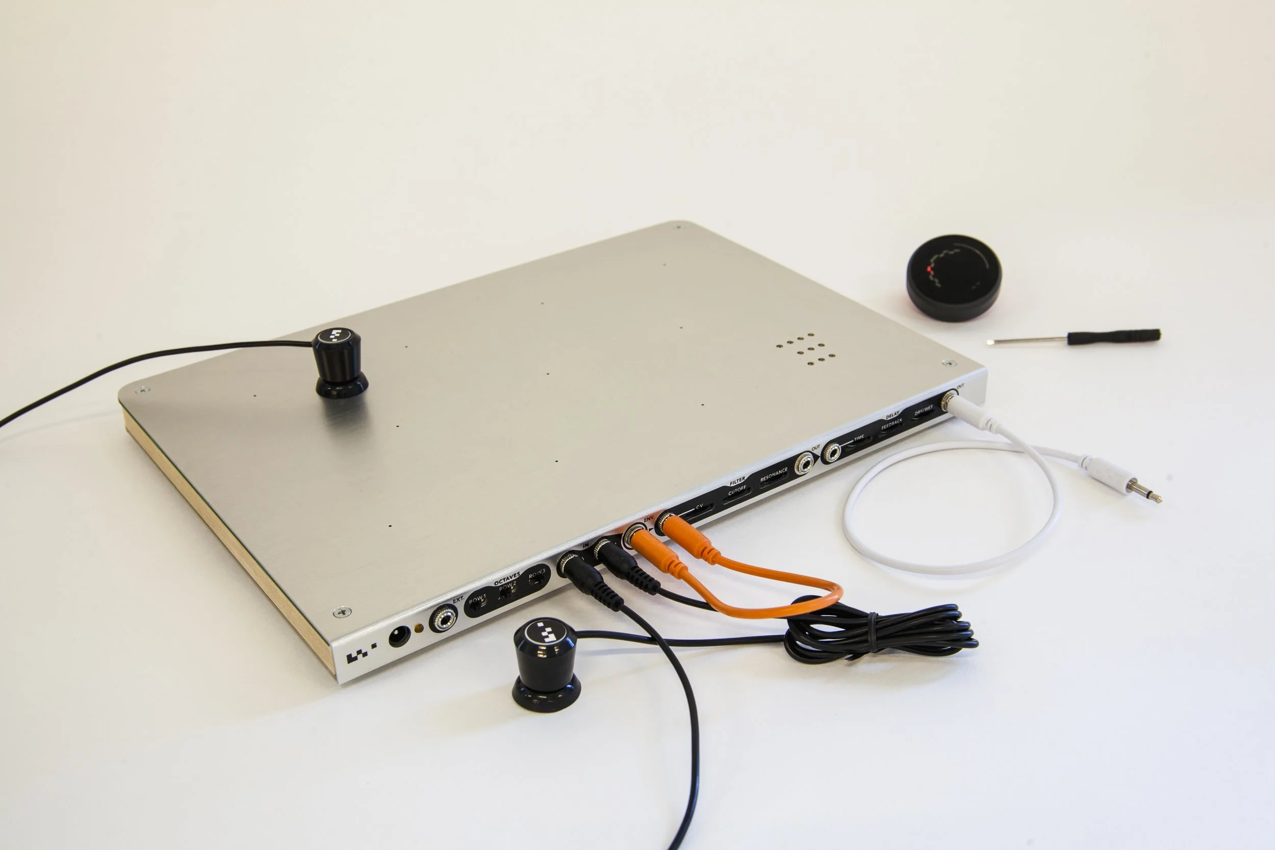 Each field can be tuned using its corresponding adjustment screw. A special physical tuner with a complimentary Chromaplane tuning website allows players to explore a curated library of tunings, and save and share their own too.